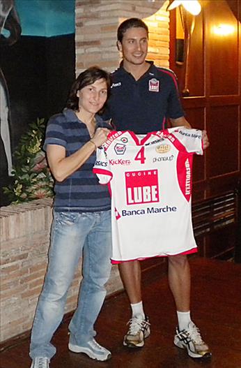Alessandro poi, prima di iniziare a palleggiare con i ragazzi, ha voluto consegnare la maglia ufficiale della Lubevolley a Giovanna, in ricordo di questo importante momento.