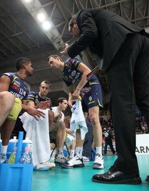 Nella foto coach Bagnoli durante un time out al PalaOlimpia