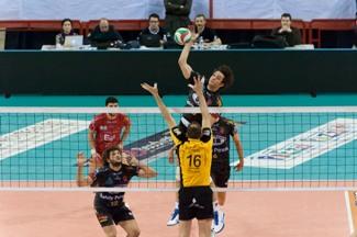 Tra i grandi interpreti del match con Reggio Emilia c’è sicuramente anche Valerio Curti (nella foto in primo tempo), letale in attacco quando chiamato in causa e che a muro in pratica le ha toccate un po’ tutte.