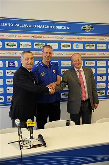 In una conferenza stampa al PalaCasaModena l’allenatore gialloblù, affiancato dal Vice Presidente Pietro Peia e dal Direttore Generale Bruno Da Re, ha annunciato questa mattina il prolungamento dell’accordo che lo legherà a Modena ancora per due stagioni (formula 1+1).