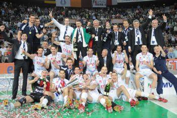 Itas Diatec Trentino: Roma, 15 maggio 2011 Itas Diatec Trentino Campione d’Italia per la seconda volta nella propria storia! Il V-Day 2011 consegna quello che ventisei giornate di regular season avevano già detto in maniera piuttosto eloquente in favore della formazione gialloblu. La squadra di Stoytchev questa sera superando per 3-0 i campioni uscenti della Bre Banca Lannutti Cuneo al Pala Lottomatica di Roma ha infatti conquistato in maniera perentoria il proprio secondo titolo italiano (il terzo in totale se si tiene conto anche di quello vinto con l’Under 18 nel 2006), tornando ad esultare per il tricolore dopo tre anni di astinenza e due finali perse. E’ il successo che mette il sigillo ad una stagione da sogno, in cui la Società di via Trener ha messo contemporaneamente nella propria bacheca tutti i trofei più importanti che lo sport può consegnare ad un club: Mondiale, Champions League e appunto scudetto. Se si esclude il secondo set, l’unico in cui Cuneo è riuscita a mettere per la prima metà della frazione in difficoltà Trento con il servizio, il match è stato un assoluto monologo gialloblu in cui la squadra di Stoytchev è sempre stata in grado di controllare le uscite del gioco di Grbic e conquistare break point in serie non solo grazie al proprio servizio ma pure per mezzo di un sistema muro-difesa di altissimo livello. A capitalizzare l’ottimo lavoro svolto da battuta e seconda linea ci hanno poi pensato Kaziyski (60% a rete), Juantorena ma soprattutto Jan Stokr. Alla prima finale scudetto di Serie A1 della propria carriera, il ceco ha sciorinato una prestazione da primattore assoluto terminando il match con 21 punti (di cui due a muro ed uno in battuta) ed il 69% a rete che non poteva far altro che fruttargli il titolo di mvp. Ottima anche la regia di Raphael, sempre lucido, ed il lavoro svolto a muro da Birarelli e con lo stesso servizio da Sala (tre dei sette ace trentini portano la sua firma) ed in ricezione da Bari. La cronaca della gara. Le due formazioni si presentano con gli schieramenti che le hanno contraddistinte in questi playoff scudetto ma a partire meglio è Trento che apporta subito un significativo strappo (5-1) grazie a due errori di Cuneo, due break point di Juantorena ed un ace di Sala. Giuliani chiama time out ma la furia trentina non si placa e con un altro ace di Sala e un attacco vincente del cubano si arriva al primo time out tecnico sull’8-2. Nella fase centrale del parziale la Bre Banca Lannutti inizia a giocare e si porta sino al -4 (10-6) poggiandosi su Wijsmans e Patriarca. La nuova accelerazione degli iridati ha la firma di Stokr e Sala che con altri due ace firmano il 16-9 che di fatto chiude il contro perché i piemontesi staccano la spina (19-9, 23-13) in attesa dell’avvio del secondo set che arriva dopo un 25-13 nettissimo. Secondo parziale che vede inizialmente gli attori interpretare a parti invertite lo stesso copione; la battuta ed il muro di Cuneo (Mastrangelo su tutti) si ergono a protagonisti e i bianco verdi volano sul 3-8. Trento prova a riprendersi immediatamente e risale fino al meno 2 (10-12) sfruttando l’efficacia a rete di Kaziyski. I Campioni d’Italia provano nuovamente a mettere terreno fra sé e gli avversari con un ace fortunoso di Grbic ma i gialloblu non demordono e con Kaziyski al servizio si portano sino al 14-15. Il rush finale vede Stokr salire in cattedra: il ceco ottiene la parità sul 16-16 e poi firma il primo vantaggio del parziale 18-17 e successivamente l’allungo decisivo (23-19) con un muro di Patriarca. Kaziyski si procura tre palle set (24-21) e chiude lui stesso sulla seconda (25-22). Il colpo assestato a Cuneo è particolarmente pesante, tant’è vero che sull’onda dell’entusiasmo Trento parte alla grande anche nella terza frazione prima con un 4-0 nel segno di Kaziyski e poi con l’8-2 siglato da Stokr. Il copione non cambia in seguito perché Stokr e Trento continuano a murare e a martellare e i gialloblu sentono profumo di tricolore giù sul 16-6. Chiude proprio un punto dell’opposto ceco addirittura sul 25-9 ed è il modo più giusto per sancire la fine della partita. “Abbiamo giocato questa partita con la testa prima ancora che con la tecnica o con la potenza a ma d’altronde dovevamo presentarci in maniera diversa rispetto alle precedenti finali che avevamo disputato con Cuneo altrimenti si rischiava di ottenere nuovamente un risultato negativo - ha dichiarato al termine della partita Radostin Stoytchev - . Era una grossa responsabilità arrivare a questo V-Day con il favore del pronostico e dopo una regular season dominata come abbiamo fatto in questa stagione. Ce l’abbiamo fatta ed ovviamente io sono felicissimo ed orgoglioso della nostra squadra, della nostra Società e dei suoi tifosi. Dedico questa vittoria a mia madre e al Presidente Mosna”. Domani sera a partire dalle ore 20.30 in Piazza Fiera a Trento i tifosi potranno offrire il proprio tributo ai Campioni del Mondo, Campioni d’Europa e freschi Campione d’Italia nella festa di chiusura dell’annata agonistica. Di seguito il tabellino del V-Day Sustenium 2011 giocato stasera al Pala Lottomatica di Roma Itas Diatec Trentino-Bre Banca Lannutti Cuneo 3-0 (25-13, 25-22, 25-9) ITAS DIATEC TRENTINO: Stokr 21, Kaziyski 13, Sala 7, Raphael 3, Juantorena 7, Birarelli 7, Bari (L); Della Lunga, Colaci, Zygadlo. N.e. Leonardi e Sokolov. All. Radostin Stoytchev. BRE BANCA LANNUTTI: Volkov 3, Nikolov 6, Patriarca 4, Mastrangelo 7, Grbic 1, Henno (L); Peda, Fortunato 1. N.e. Galic, Montagna, Carletti. All. Alberto Giuliani ARBITRI: Saltalippi di Perugia e Santi di Città di Castello (Perugia). DURATA SET: 22’, 29’, 21’; tot 1h e 12’. NOTE: 9.250 spettatori per un incasso di 175.300 euro. Itas Diatec Trentino: 7 muri, 7 ace, 11 errori in battuta, 3 errori azione, 64% in attacco, 65% (59%) in ricezione. Bre Banca Lannutti Cuneo: 7 muri, 2 ace, 9 errori in battuta, 7 errori azione, 32% in attacco, 44% (3