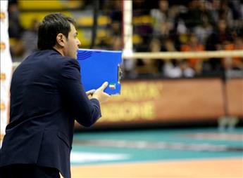 Nella foto, il coach della Tonno Callipo Calabria Vibo Valentia Gianlorenzo “Chicco” Blengini durante la gara d’andata tra i calabresi e gli umbri (foto Scalamandrè)