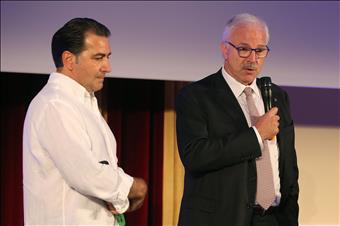 Nella foto Zani Legavolley, il presidente onorario di Powervolley Revivre Milano Lucio Fusaro (a destra) nella presentazione di Bologna |