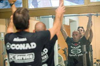 Nella foto: Capitan Vujevic e Andrea Giovi al lavoro in sala pesi
