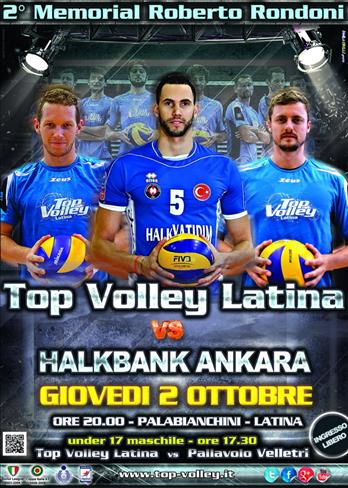 Top Volley Latina: Un grande evento farà da preludio all’inizio della Superlega UnipolSai 2014-15. Giovedì 2 ottobre al PalaBianchini si disputerà il II Memorial Roberto Rondoni dove la Top Volley Latina ospiterà l’Halkbank Ankara. Una sorta di rivincita dopo la finale di Coppa Cev di due stagioni fa. La formazione turca è oggi una delle realtà maggiori del panorama internazionale. Dopo aver vinto la Coppa Cev è stata l’organizzatrice delle final four di Champions chiudendo al secondo posto superata solo dai russi del Belogorie Belgorod. In patria viene dalla tripletta: Supercoppa, Coppa e Scudetto. È allenata da “mister secolo” Lorenzo Bernardi e ha tra le sue file atleti del calibro di Osmany Juantorena, Tsvetan Sokolov e Michal Kubiak che hanno militato nel nostro campionato. Il Memorial è dedicato all’allenatore che ha portato la squadra in serie A, poi diventato dirigente e scomparso nel 2012 a seguito di una lunga malattia. All’interno della giornata si affronteranno le giovanili del Latina con quelle del Velletri dove milita Andrea figlio di Roberto. Entrata libera.