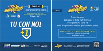 Tra i due test sul campo, inoltre, in calendario anche la presentazione dell’attività per la stagione 2014/2015 che si terrà martedì 7 ottobre alle ore 19 presso la Sala Giunta del Palazzo Municipale. La presentazione del roster della serie A2 e dello staff tecnico, la presentazione del gruppo dirigenziale e dello staff medico-sanitario, la presentazione dei partner (nuovi come nel caso di Asics sponsor tecnico, storici come Bcc Castellana Grotte, Chimica D’Agostino, Diatek e Sabatelli Gastronomia e di impatto sociale come Admo e Aguvs) e del progetto di settore giovanile Accademia del volley: sarà il presidente Miccolis, alla presenza delle istituzioni cittadine, ad introdurre tutti gli ambiti societari e a presentare anche la campagna abbonamenti che, quest’anno, prevede tre possibili formule di sottoscrizione.