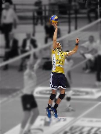 Il Fenomeno Bruninho Rezende alza di piede, Matteo Piano schiaccia al centro.