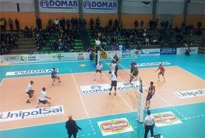 Domar Matera: E’ stata sicuramente una Domar Matera più compatta e determinata del solito quella vista giocare ieri al Palasassi contro la Globo Banca Popolare del Frusinate Sora. Davanti alle telecamere di RAI Sport, la partita sarà trasmessa in differita questa sera su RAI Sport 2 a partire dalle 20:45, i ragazzi di coach Mastrangelo, anche se alla fine sono usciti sconfitti per 3 a 1, contro i laziali, sono apparsi più in forma e quindi molto più concentrati e determinati rispetto alle ultime prestazioni. Se si considera poi che capitan Suglia e compagni hanno dovuto fare i conti con un’avversaria del calibro di Sora e senza poter contare sull’apporto del forte schiacciatore titolare Matej Cernic, ancora indisponibile per l’infiammazione al ginocchio, allora forse bisogna prendere in considerazione quanto di buono espresso in campo e non tanto il risultato finale.