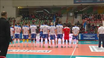 Il calo di tensione agonistico nel corso della partita, ha evidenziato un clichè gia visto, con Brescia che partiva bene nella prima frazione di gioco supportata dagli ottimi Paoletti (25 punti alla fine del match) e Rodella, oltre che da una grandissima difesa con in prima linea il libero Peli; concluso il primo set con il vantaggio di 26-24, si sono ripresentati antichi difetti, spina nel fianco dei bianco blu, nel corso del Campionato.