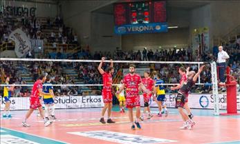 LE CIFRE – VERONA: 17 b.s., 5 ace, 28% ric. pos., 22% ric. prf., 44% att., 8 muri. PERUGIA: 18 b.s., 11 ace, 34% ric. pos., 22% ric. prf., 51% att., 8 muri.