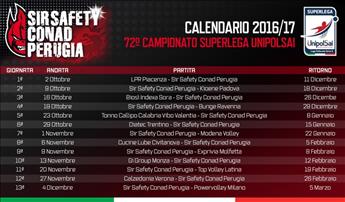 Tra le date da cerchiare in rosso al PalaEvangelisti il 9 ottobre, esordio casalingo contro Padova, il primo novembre, quando verranno a Perugia i campioni in carica di Modena e nel 2017 i match contro Trento (il 15 gennaio), contro Civitanova (5 febbraio) e contro Verona (il 26 febbraio).