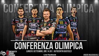 Sir Safety Conad Perugia: La Sir Safety Conad Perugia comunica che nella giornata di lunedì 5 settembre 2016 avrà luogo una conferenza stampa societaria con i cinque atleti bianconeri protagonisti alle Olimpiadi di Rio 2016.