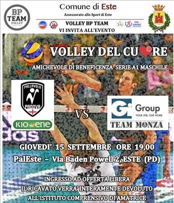 MONZA, 14 SETTEMBRE – Domani, giovedì 15 settembre, alle ore 19.00, il Gi Group Team Monza scenderà in campo sul mondoflex del PalEste di Este, contro la Kioene Padova, per l’amichevole di beneficenza “Volley del Cuore”. Per Botto e compagni, arrivati a metà della quinta settimana di preparazione al prossimo campionato di Superlega UnipolSai, terza esperienza consecutiva della prima squadra maschile del Consorzio Vero Volley nella massima categoria del volley italiano, si tratterà del primo vero test stagionale dopo i buoni allenamenti congiunti disputati con Cantù, in casa e fuori, e Bergamo davanti al pubblico amico. I ragazzi di Falasca, nell’occasione guidati dal duo Cattaneo-Dagioni, si troveranno infatti di fronte i pari categoria della Kioene Padova, il cui primo scontro in Superlega è previsto alla settima giornata di andata, in programma il 1°novembre 2016, alla Kioene Arena di Padova. L’ingresso al Palazzetto (via Baden Powell 2 di Este PD) è ad offerta libera. Il ricavato della serata verrà devoluto interamente all’Istituto Comprensivo di Amatrice.