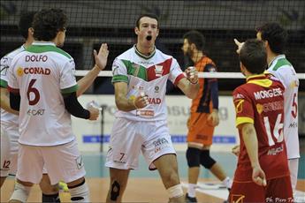 Scaltriti lo stuzzica simpaticamente e carica l'ambiente: "Se vuole venire a riprendere il suo forziere, sappia che troverà una ciurma agguerrita. Vermiglio e Dennis? Non abbiamo paura, abbiamo un opposto che disputa la World League e un palleggiatore Campione d'Italia in carica".