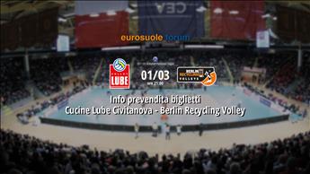 Info prevendita biglietti Cucine Lube Civitanova - Berlin Recycling Volley