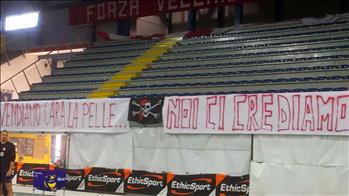 Kemas Lamipel Santa Croce: Striscioni d’incoraggiamento ai Lupi sono comparsi stamani mattina al PalaParenti per l’allenamento di rifinitura dei biancorossi. Sulla Curva si leggeva: “Vendiamo cara la pelle” e poi, “Noi ci crediamo!”. Il tutto vergato a nome della Fossa dei Lupi che, tramite uno dei suoi più noti trascinatori, ha così commentato: “Non potevamo non lasciare il segno alla vigilia di una gara determinante come quella di domani a Montefiascone con Civita Castellana. Ai ragazzi dovevamo dare un input, un ulteriore incoraggiamento al fine di ottenere i tre punti contro la formazione viterbese. Sappiamo bene che il nostro destino, a questo punto, non dipende soltanto da noi, ma anche dai risultati provenienti dagli altri campi, in particolare quello di Mondovì. Vedremo cosa succederà nel tardo pomeriggio di domani. Intanto pensiamo a noi. La squadra darà quanto nelle sue posssibilità, i tifosi la seguiranno e la società ha già fatto sapere che concederà il biglietto omaggio ai sostenitori biancorossi presenti a Montefiascone. Saremo vicino ai ragazzi fino in fondo”. Fra i due striscioni posti in Curva, campeggiava la bandiera dei pirati, probabilmente messa lì in onore di Angel Dennis, soprannominato per la sua carismatica figura con l’appellativo di “Re dei Caraibi”, dopo le sue performances in maglia biancorossa. Dennis guiderà l’attacco della Kemas Lamipel insieme al brasiliano Guimaraes. Dall’altra parte, replicheranno Banderò e Preti. La gara si preannuncia dura ed incerta. Ma i Lupi ed i loro tifosi sono pronti. Marco Lepri – Ufficio stampa Lupi Santa Croce |