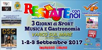 Da venerdì 1 a domenica 3 settembre Civitanova Marche si tingerà di biancazzurro con l'evento "Restate con Noi". Una miscela di sport, musica e gastronomia sotto il segno della società potentina. Sabato alle 17.00 test all'aperto con Spoleto, a seguire la visione su maxi-schermo del match di calcio Spagna-Italia e la passerella d'onore per capitan Monopoli e compagni. Domenica live dei Dirotta su Cuba (21.30). Baby Park XXL, tanti eventi, tornei giovanili, stand e area food. Ingresso free