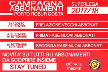 Oggi e domani i 'vecchi' abbonati avranno la possibilità di acquistare gli abbonamenti al PalaCosta dalle ore 17.30 alle ore 20. Nei primi tre giorni si è raggiunta la soddisfacente quota di 180 tessere sottoscritte. Dal 4 al 15 settembre scatterà la prima fase di vendita ordinaria delle tessere, aperta a tutti