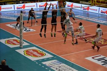 Tonno Callipo Calabria Vibo Valentia: Alla vigilia del match erano a secco di vittorie entrambe. Tonno Callipo Calabria Vibo Valentia e Kioene Padova arrivano al match del 1° turno infrasettimanale con la fame di trovare il primo centro stagionale. La spuntano, in maniera netta, i veneti di coach Baldovin che espugnano (di nuovo a distanza di undici anni) il Pala Valentia infliggendo una dura sconfitta alla compagine calabrese con il punteggio di 0-3. La Tonno Callipo Calabria Vibo Valentia subisce la veemenza di Travica e compagni non riuscendo a trovare il bandolo della matassa neanche quando, nel terzo set, era avanti di 4 lunghezze con la possibilità di riaprire il set. Padova martella al servizio con i vari battitori al salto, Cirovic, Nelli e Randazzo e la Tonno Callipo, dopo un buon avvio, ha sofferto soprattutto nel fondamentale della ricezione subendo la battuta avversaria. Gabriele Nelli, opposto classe 1993, ha trascinato la Kioene Padova realizzando 18 punti con il 64%, numeri che gli sono valsi la palma di Mvp. Padova ha poi trovato in Randazzo e Cirovic, bene orchestrati da Travica, due precisi riferimenti anche in attacco con l’ex Tonno Callipo autore di 15 punti con il 65% in attacco, mentre il serbo ha concluso il match con 11 punti e il 58% in attacco. In casa Tonno Callipo percentuale d’attacco ferma al 41% con nessun giocatore giallorosso riuscito a varcare la doppia cifra. Nel primo set è stato Cirovic a spaccare il set in battuta trovando l’allungo che ha permesso a Padova di trovare il vantaggio decisivo. Pessimo secondo set per la squadra di coach Lorenzo Tubertini, mai in partita. Il tecnico modenese ha provato più volte a rimescolare le carte schierando quasi tutti i componenti della rosa, ma la rotta del gioco non ha subito variazioni con Padova superlativa in difesa e brava a concretizzare in contrattacco. Nel terzo set la reazione della Tonno Callipo che si è portata avanti anche di 4 punti prima di subire il ritorno degli ospiti che hanno rimontato grazie alla battuta di Randazzo prima, e preso il largo dopo grazie al turno di servizio di Volpato. E’ stato poi Nelli a chiudere i conti con l’attacco vincente che è valso il 20-25.