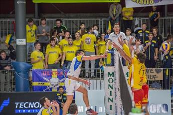 Monini Spoleto: Non stecca la Monini Marconi nel secondo appuntamento casalingo consecutivo. 3-0 alla Pag Taviano in un’ora e un quarto e pass in tasca per i quarti di Coppa Italia (bisognerà attendere ancora per conoscere il nome dell’avversaria). Oleari bravi a non farsi spaventare da un avvio veemente degli ospiti, dopo qualche patema iniziale Corvetta e compagni si sono sciolti andando a conquistare l’intera posta con un Giannotti capace di mettere a terra 9 ace nell’arco di tre set. Davvero tanta roba per l’opposto padovano che dimostra come l’infortunio alla caviglia sia solo un lontano ricordo. In classifica c’è l’aggancio a Bergamo a quota 23 punti, anche se i lombardi mantengono la seconda piazza grazie ad un miglior record di vittorie. La cronaca - Provvedi non cambia e si affida ai soliti 6+1 con Di Renzo a dar man forte in difesa. In casa Taviano forfait dell’ultima ora per Mariella e Bigarelli, al loro posto giocano Piedepalumbo e Beltrami. Un buon avvio di marca ospite viene contenuto dagli attacchi di Galliani, il primo break per i locali arriva sul turno in battuta di Corvetta (10-7) e genera il time out di Licchelli, da cui però si esce con 3 ace di Beltrami che ribaltano il punteggio. Provvedi allora corre ai ripari e inserisce Msariano per Galliani. Prova la nuova spallata la Monini Marconi con l’ace di Giannotti (18-15), il primo di una lunga serie che finalmente fa respirare la Monini Marconi. Per la cronaca, il più veloce dei servizi dell’opposto oleario tocca i 112 km/h, si chiude 25-16. L’assetto con Mariano da qualche sicurezza in più a Provvedi che conferma il martello bergamasco nel sestetto del secondo parziale. Ed è proprio da un turno al servizio di Mariano che nasce il break (7-3), implementato dall’ace di Corvetta che porta a 5 il vantaggio. Arriva il nuovo show di Giannotti al servizio: ace e slash che manda Bertoli ad attaccare in pipe il 14-7. Al festival degli ace si iscrive anche Mariano (17-9), ma c’è il sussulto degli ospiti che con un muro punto e un ace di Astarita si riavvicinano un po’ inducendo Provvedi a fermare il gioco. Sono due muri spaventosi di Van Berkel e riportare il sereno in casa Monini, il 2-0 porta la firma di Zamagni con un primo tempo dei suoi. Mariano è scatenato ad inizio terzo set, tre punti consecutivi con tre attacchi differenti a conferma del suo enorme bagaglio tecnico. Taviano con due muri impatta a quota 5, è proprio questo fondamentale a tenere a galla gli ospiti che rimettono anche la testa avanti (8-9). A togliere le castagne dal fuoco, tanto per cambiare, sono le battute di Giannotti: 113 km/h per il secondo ace consecutivo e il 13-10. Taviano lotta, più che nei set precedenti, ma subisce troppo le battute degli avversari e non può rientrare. Il muro di Zamagni su Ruiz regala 7 match point, si chiude alla seconda opportunità con un attacco di Giannotti. Monini Spoleto – Pag Taviano 3-0 (25-16; 25-17; 25-18) Monini Spoleto: Zamagni 7, Bertoli 6, Giannotti 21, Galliani 3, Van Berkel 8, Corvetta 2, Bari (L), Mariano 9, Di Renzo (L), Segoni, Costanzi, Agostini, Cubito, Katalan. All: Provvedi Pag Taviano: Musardo 6, Beltrtami 9, Astarita 10, Ruiz 8, Smiriglia 3, Piedepalumbo 2, Percoco (L), Bigarelli, Mariella, Avelli, Torsello, Bruno. All: Licchelli |