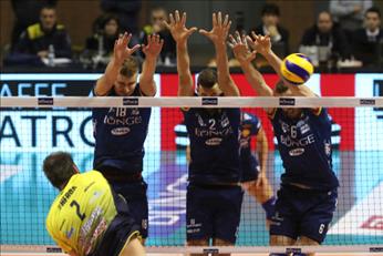 Terzo set A rompere sul 7-7 l’equilibrio iniziale ci pensano Poglajen e Buchegger (10-7), ma Castellana reagisce raggiungendo il pareggio sul 12-12 e andando in corsia di sorpasso sul 14-15, obbligando Soli al time out. Si procede con le due squadre che vanno avanti di pari passo fino al 18-18, quando un ace di Ferreira Costa e una schiacciata fuori di Buchegger non allontanano i pugliesi: 18-21. Raffaelli, entrato al posto di Poglajen, e Orduna a muro suonano la carica (20-21), con Lorizio che chiama i suoi giocatori in panchina. Un’infrazione in palleggio degli avversari regala il pareggio (21-21), Poglajen al servizio ribalta tutto con due ace (24-21) e al terzo match point è Buchegger a mettere la parola fine all’incontro (25-23).