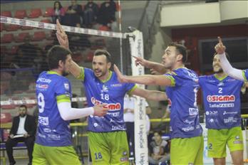 Sigma Aversa: AVERSA – Da lassù Rolando Di Meo starà sicuramente sorridendo perché la sua squadra, la sua Sigma Aversa, ha giocato una grandissima gara riuscendo a cancellare il momento negativo con un successo pieno (3-0) contro la Conad Reggio Emilia che lancia i normanni in vista dei due prossimi match, contro Castellana e Massa, che possono essere veramente decisivi per la corsa ai primi quattro posti della classifica. Prestazione eccellente di Boesso (che ha sostituito l’infortunato Santangelo) autore di ben 17 punti col 62% in attacco. PRIMO SET. Prima della gara viene osservato un minuto di silenzio (che si trasforma in un minuto di applausi di tutto il PalaJacazzi) per Rolando Di Meo, papà del presidente Sergio, venuto a mancare ad inizio settimana a 82 anni. Poi si inizia a pensare alla pallavolo giocata. Ed è partita vera: le due squadre lottano su ogni pallone fino a quando Boesso e Giacobelli stampano due muri micidiali nei 3 metri (9-6) costringendo coach Held a chiamare il primo time-out della gara. Al rientro in campo break emiliano e nuova parità a 10. Boesso però ha il braccio caldo e prima sfiora l’ace e poi passa in diagonale per il 14-11. La Sigma prova ad amministrare il vantaggio (ace di Simeonov e 16-13) ma quando Libraro trova il mani e fuori del +4 (17-13) l’allenatore della Conad sfrutta il secondo time-out. Quando Aversa trova il ventesimo punto ne ha 5 di vantaggio sugli avversari. Piccolo black out normanno e Reggio Emilia torna -2 (22-20) e addirittura trova un nuovo pareggio nel momento decisivo del parziale (23-23). Ferrari trova il servizio vincente regalando il primo set alla Conad (23-24). Ma viene annullato: si va ai vantaggi. Il ‘vincente’ di Simeonov e l’attacco out di Koraimann fanno cambiare campo con la Sigma aventi 1-0 (27-25). SECONDO SET. Due aces di fila del centrale Vigil e la Sigma trova il primo +2 del parziale (6-4). Poi si va punto a punto fino a quando Simeonov trova uno stupendo mani out contro un muro a tre (12-8) costringendo coach Held a fermare tutto. Ma è un monologo della Sigma: Vigil passa sul muro emiliano per il +7 (16-9) e il tecnico della Conad decide di chiamare anche il secondo ‘tempo’ a disposizione. Quando Simeonov trova un pallonetto da applausi il tabellone riporta il punteggio di 21-15. Muro a uno di Vigil e 23-15, dopo pochi secondi Boesso (anche aiutato dal nastro) sigla il 24-16 regalando ben 8 set point alla sua squadra. Ne viene annullato uno ma Koraimann spara fuori la battuta e la Sigma trova il 2-0 (25-17). TERZO SET. Si parte con un grande equilibrio ma è la Conad a trovare il primo allungo quando Sesto trova il servizio vincente del 5-8. Reggio riesce ad avere anche 4 punti di vantaggio (6-10) e coach Bosco chiede al secondo arbitro di poter parlare con i propri ragazzi. Al rientro in campo Onwuelo trova tre aces di fila per il +7 (6-13). E l’allenatore normanno non può fare altro che sfruttare anche il secondo time-out provando a togliere concentrazione all’attaccante nigeriano di Reggio Emilia. Cambia anche l’assetto: fuori Vacchiano e Libraro e dentro Marra e Baldari. E’ proprio quest’ultimo ad avviare una mini rimonta (13-17) che porta Held a chiamare time-out. Quando le due squadre tornano sul taraflex Vigil stampa l’ace del -3 (14-17) mentre Boesso trova l’ultimo centimetro di campo per il -2 (17-19). La successiva invasione emiliana (18-19) porta coach Held a giocarsi anche il secondo ‘discrezionale’. Il pareggio? Questione di secondi: Boesso passa a 100 chilometri orari nel muro avversaria e stampa un micidiale 20-20. Quando Onwuelo spara out la Sigma addirittura va avanti cancellando uno svantaggio anche di 7 punti (22-21). Mani e fuori di Simeonov e 23-21, Boesso trova l’ace del 24-21 regalando ben 3 match point. Ne basta uno: Onwuelo tira fuori ed è 25-21. Capolavoro della Sigma. SIGMA AVERSA: Pinelli 2, Boesso 17, Vacchiano (L1), Grassi ne, Vigil Gonzalez 14, Libraro 3, Simeonov 11, Catena ne, Baldari 1, Marra (L2), Giacobelli 6. All. Bosco. Secondo all. Passaro CONAD REGGIO EMILIA: Raffaele ne (L2), Held ne, Iglesias 1, Sesto 3, Arienti ne, Bortolozzo 2, Bellini 1, Bonante, Ferrari 5, Ippolito 5, Onwuelo 21, Cester, Morgese (L1), Koraimann 9. All. Held. Secondo all. Zambolin ARBITRI: Scarfò di Reggio Calabria e Nicolazzo di Catanzaro