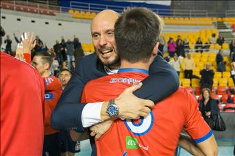 Le dichiarazioni a fine gara Spanakis: E’una emozione immensa e una gioia infinita essere arrivati in finale con questa Società. Ci era sfuggita lo scorso anno di un soffio, oggi i ragazzi sono stati fantastici. Questo gruppo è il migliore che abbia allenato finora, senza nulla togliere agli altri, perché ha una dedizione e un’abnegazione in palestra esemplare che ci ha portato a questo traguardo. Santa Croce è una squadra eccezionale, con una pressione sulla fase break notevole e oggi alcuni scambi sono stati a livello della Superlega da parte di entrambe le formazioni. Ho cercato di riportare serenità dopo la sconfitta di qualche giorno fa, facendo capire ai miei giocatori che per vincere questa partite occorre un’attenzione estrema, soprattutto sulle rigiocate e i contrattacchi che ci avevano penalizzato nella sfida precedente e su cui dovevamo osare di più. Il loro opposto Wagner è un giocatore straordinario e l’obiettivo che ci eravamo posti era di contenerlo il più possibile, cosa che ci è riuscita bene sia a muro che in difesa. Dedico il successo odierno alla mia famiglia da cui spesso sono lontano, ma soprattutto ai ragazzi cui voglio fare un applauso speciale.”