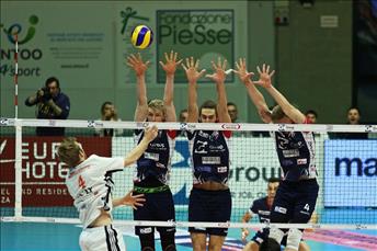 QUARTO SET Parte col break Milano (5-1) grazie ai muri di Averill e Abdel-Aziz rispettivamente su Hirsch e Plotnytskyi e Falasca chiama time-out. Alla ripresa del gioco muro di Averill su Barone (6-1 Milano) e Falasca lancia in campo Walsh per Shoji e Finger per Hirsch. Milano viaggia sull’onda dell’entusiasmo ed il Gi Group Team soffre il buon momento degli ospiti con Klinkenberg al servizio (9-1). Finger spezza il digiuno brianzolo (9-2) e poi guida i suoi al recupero con un ace, 11-4, ma un errore a testa di Botto e Dzavoronok valgono il nuovo break Revivre, 13-4. Ancora Abdel-Aziz ad andare a segno per i suoi sia al servizio che in attacco, 19-7. Finger spinge i suoi a crederci fino alla fine (20-10) e poi 24-16 ma il distacco è troppo: Milano chiude il gioco 25-16 e la gara 3-1.
