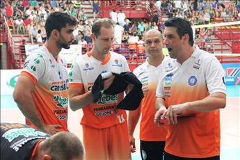 Nella foto, Marcelo Fronckowiak durante un time-out all’epoca in cui allenava il Volei Canoas (foto tratta dalla pagina facebook del club brasiliano)